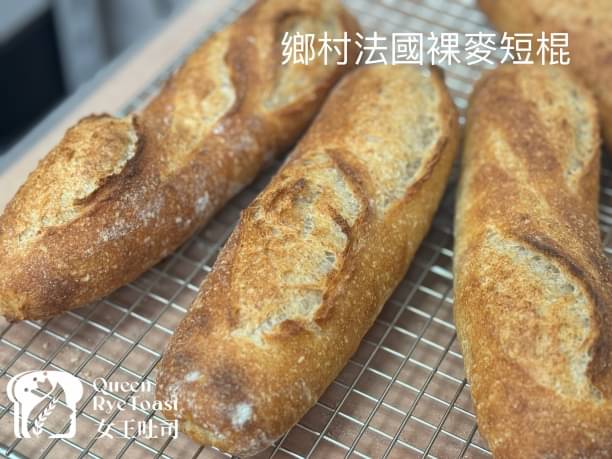 無糖無油:這款是用商業酵母搭配野酵母增添風味,烤出來的法棍內軟、外薄酥脆,裸麥的香氣、與法國粉相呼應,實在是很棒的一款健康麵包。