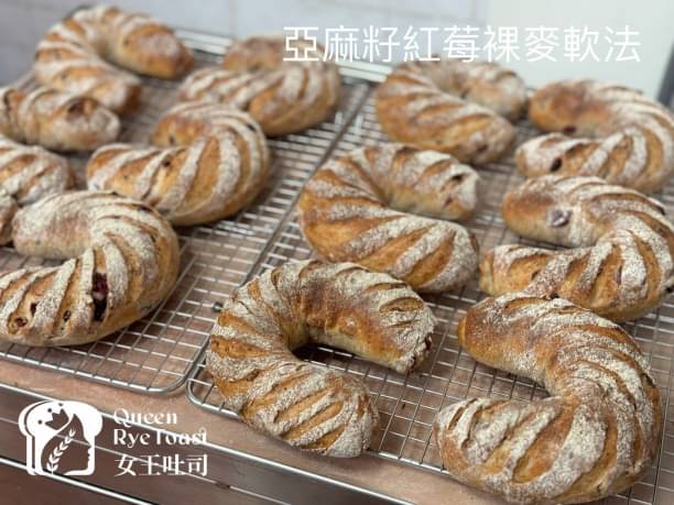 核桃、麵包體的香氣,麵包的斷口性很好,容易咀嚼,蔓越莓、亞麻籽的相互交錯,感受果乾的微甜、主題是亞麻籽所以有很多脆脆的特別口感。