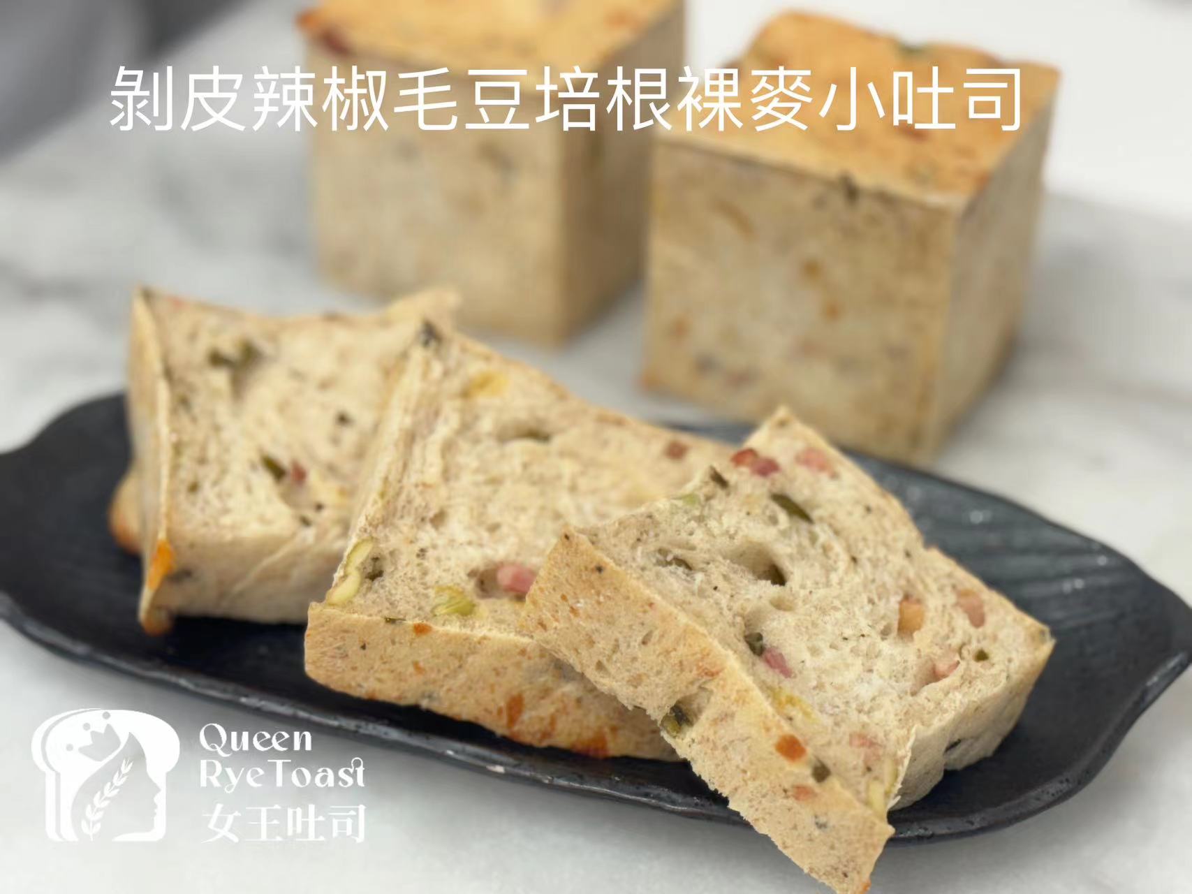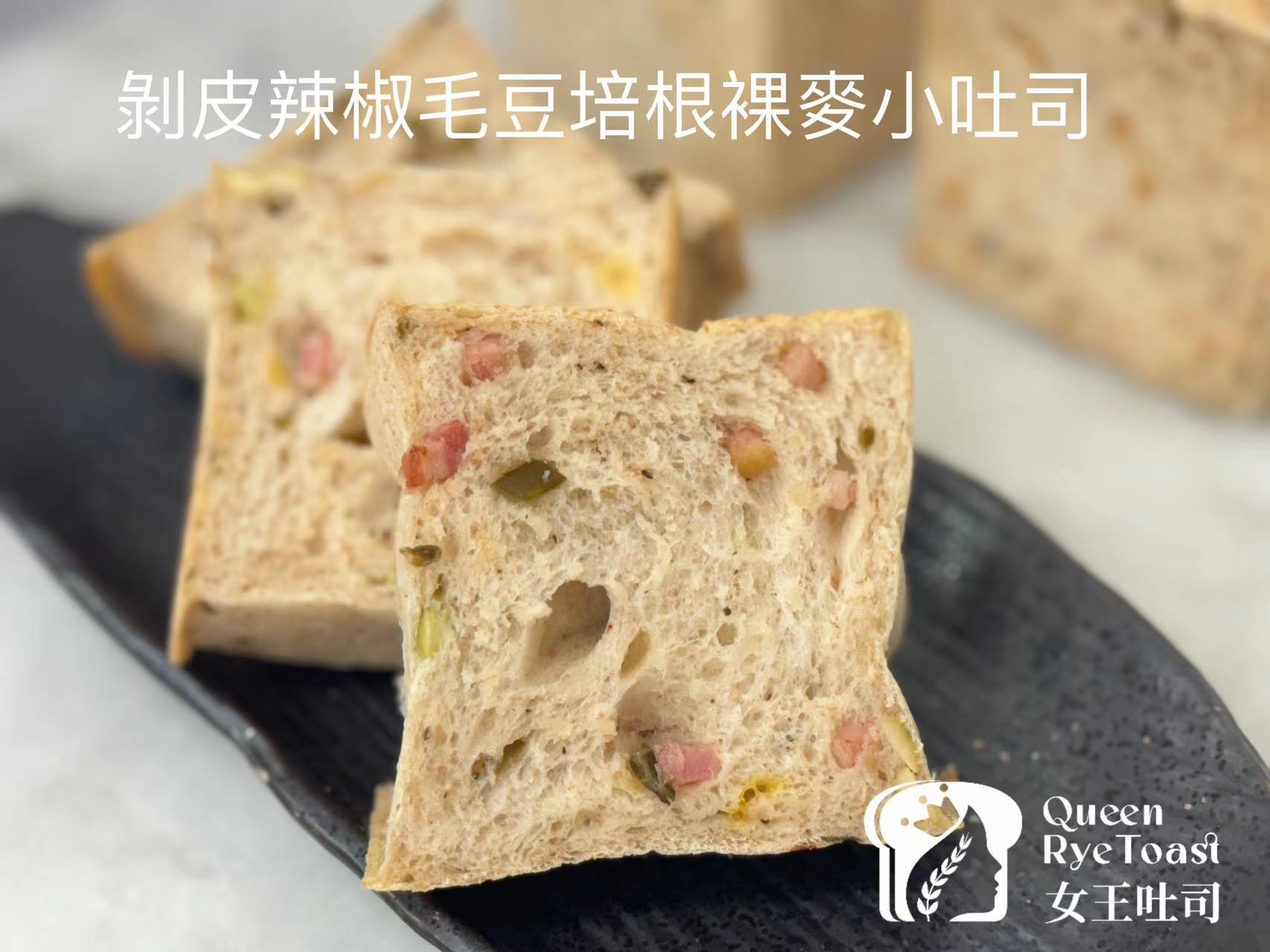 這款是由英式脆皮吐司,改良的創意風味吐司,藉由剝皮辣椒帶出麵包體的淡淡香氣層次,再與其他食材結合而成,喜歡鹹口味的不要錯過。
