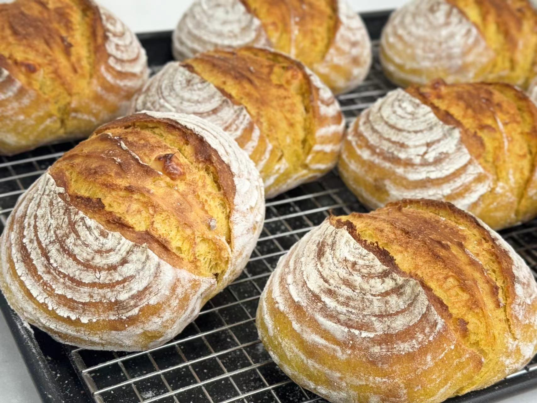 成分:法國粉、高粉、裸麥粉、乾酵母、細砂糖、海鹽、 砂糖、水、動物性鮮奶油、南瓜泥、乳酪丁