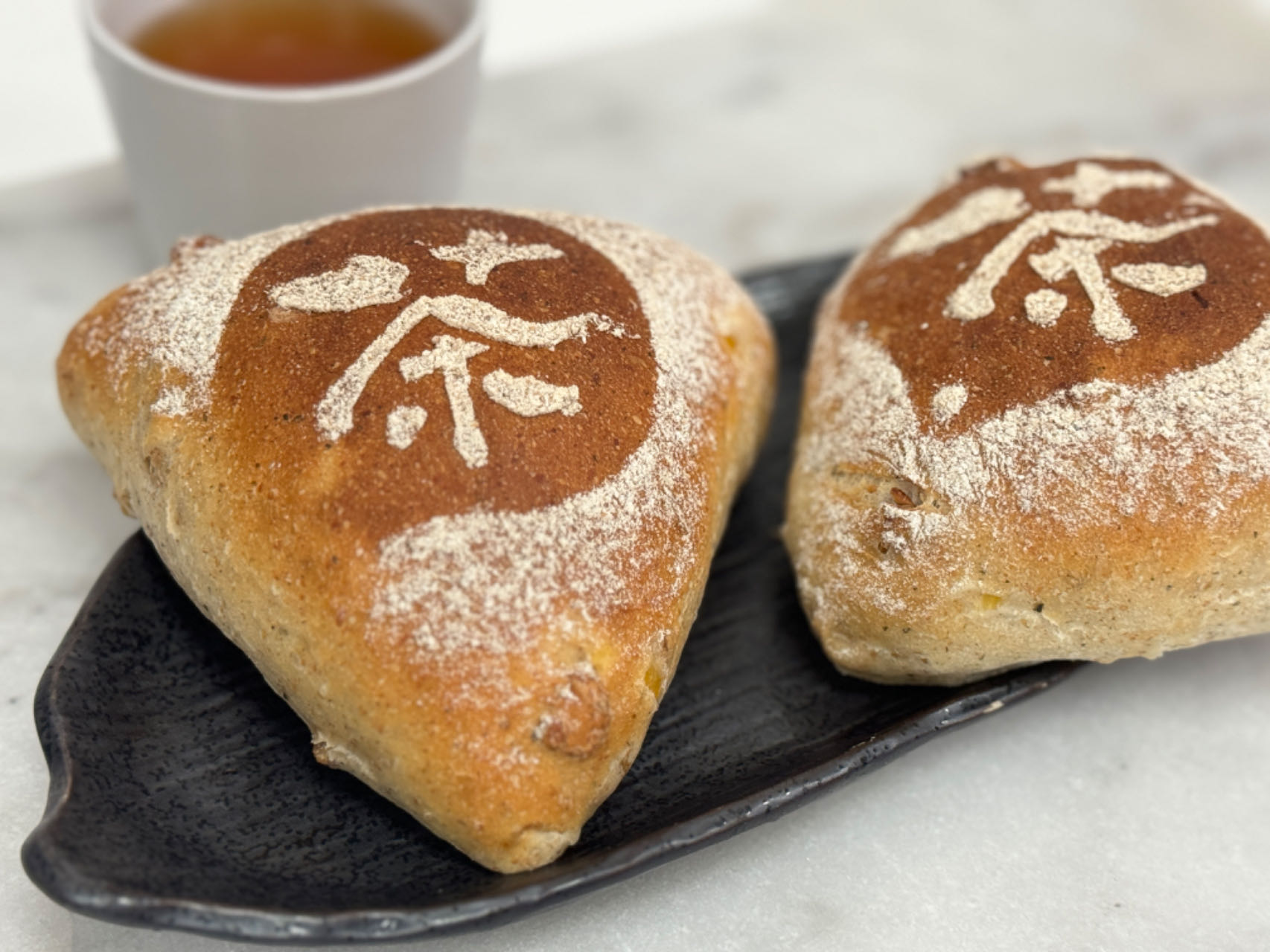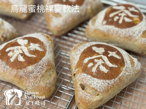 成 分:高粉、法國粉、裸麥粉、乾酵母、海鹽、 砂糖、烏龍茶、無鹽發酵奶油、烏龍茶碎、核桃、蜜漬水蜜桃乾