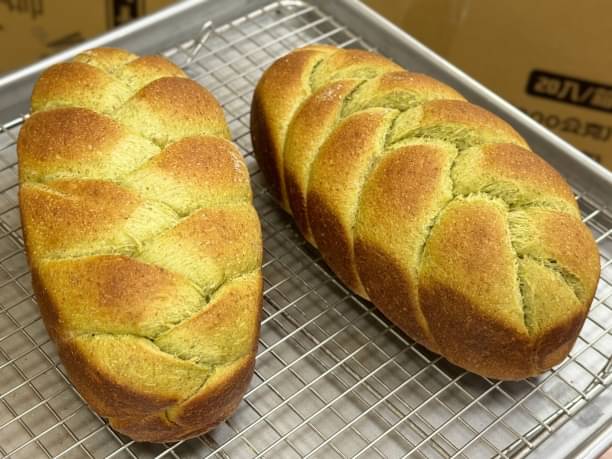 這款講究外型的編織,吃起來很鬆軟,抹茶的香氣一烤出來的味道,溫順迷人,喜歡抹茶的你一定要品嚐一下喔。鐵觀音的味道我很喜歡,尾韻有天然楓糖的甜味回甘,蓬鬆的吐司有蛋糕的感覺。