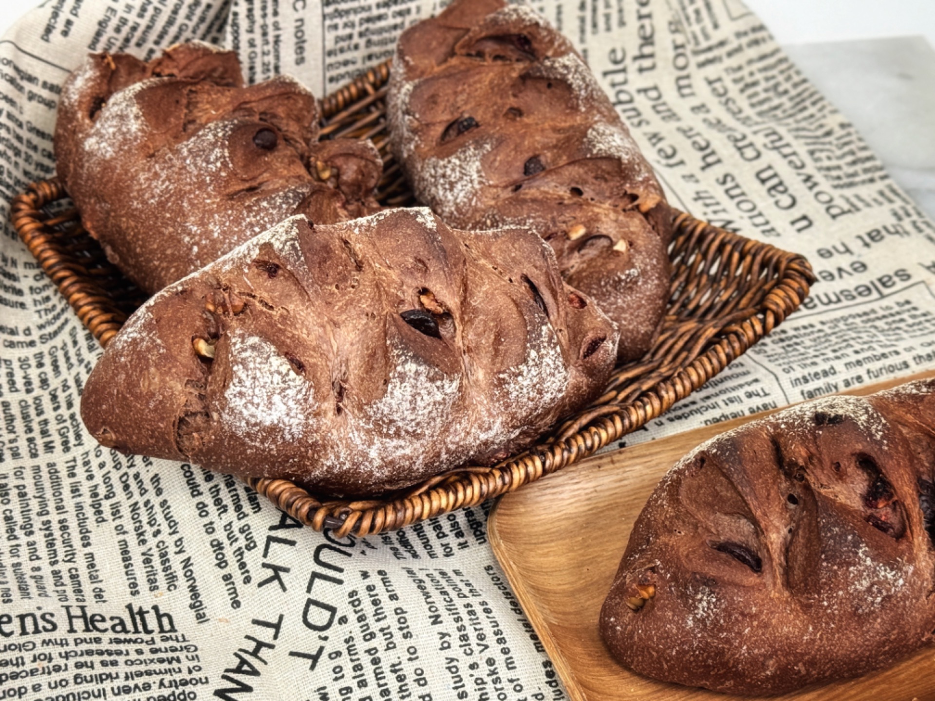 成分:法國粉、高粉、裸麥粉、巧克力粉、乾酵母、細砂糖、海鹽、 砂糖、巧克力粉、牛奶、水、無鹽發酵奶油