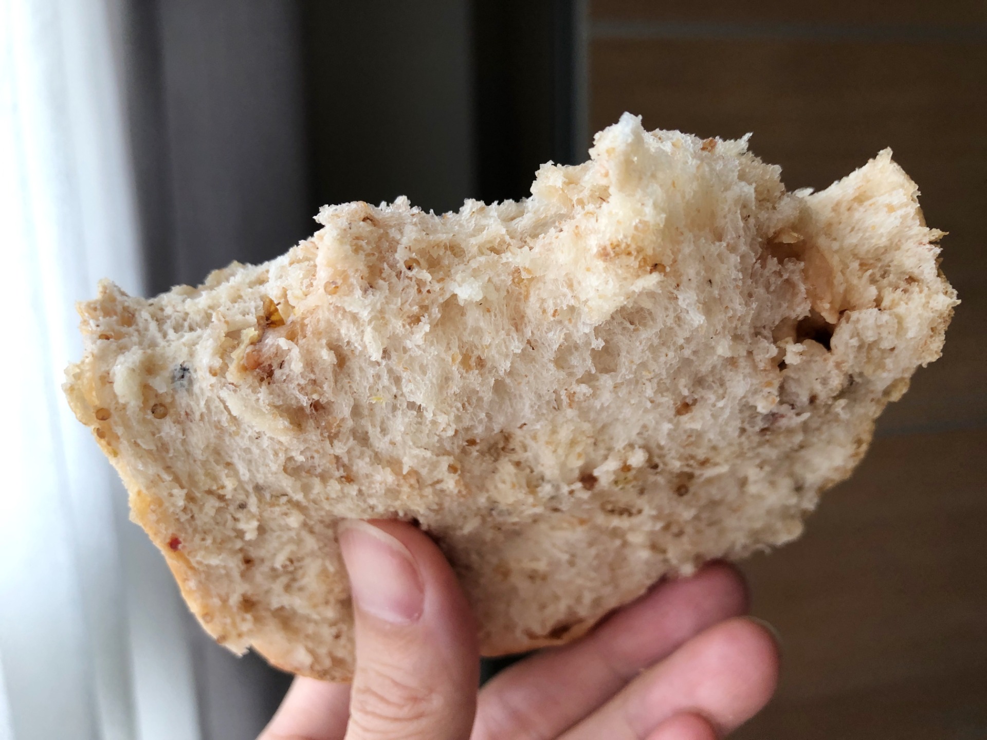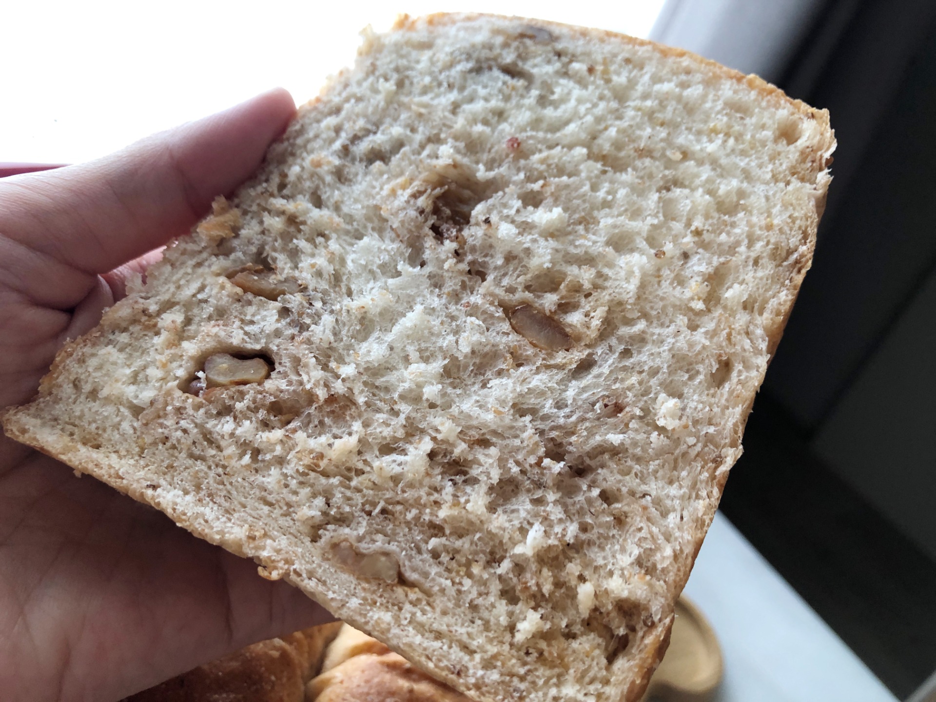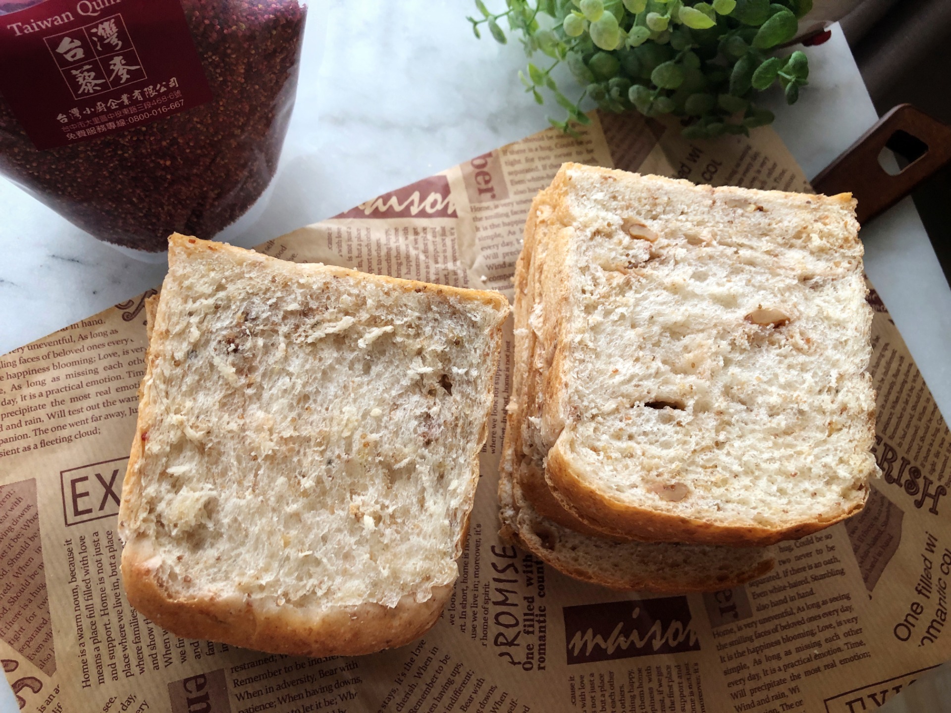 ⭕️ 麵包體有黑麥粉的香氣、日本高筋麵粉、法國黑麥麵粉、蜂蜜核桃、台灣紅藜麥、瑞穗全脂牛奶,營養與口感兼具。