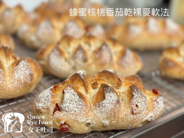 成 分:牛奶、水、裸麥粉、法國粉、龍眼蜂蜜、海鹽、無鹽發酵奶油、酵母粉、蜂蜜核桃、番茄乾碎