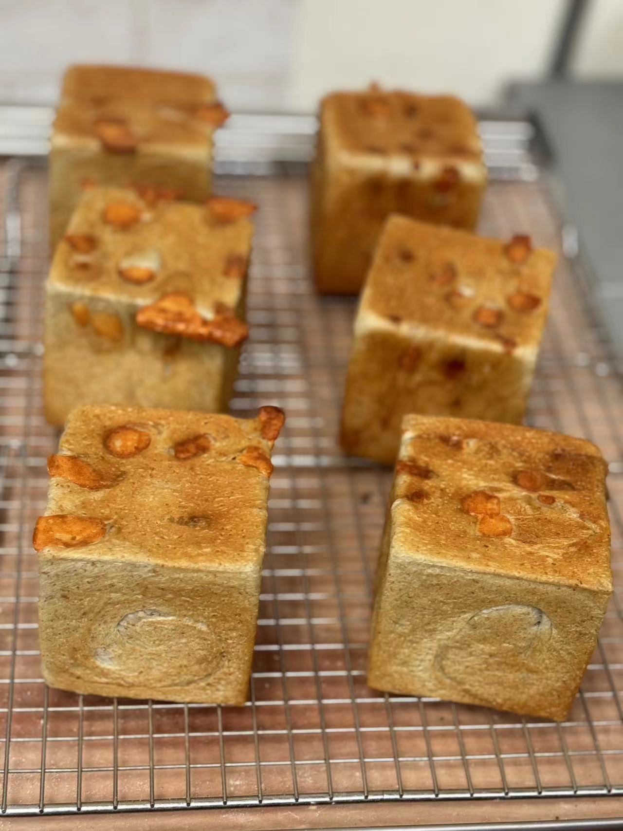 這款吐司有焦香的乳酪丁、柔軟的黑鹽吐司,感覺是一款鹹口味的吐司,但因楓糖烘烤後,散發出微甜香氣,單吃就很好吃。