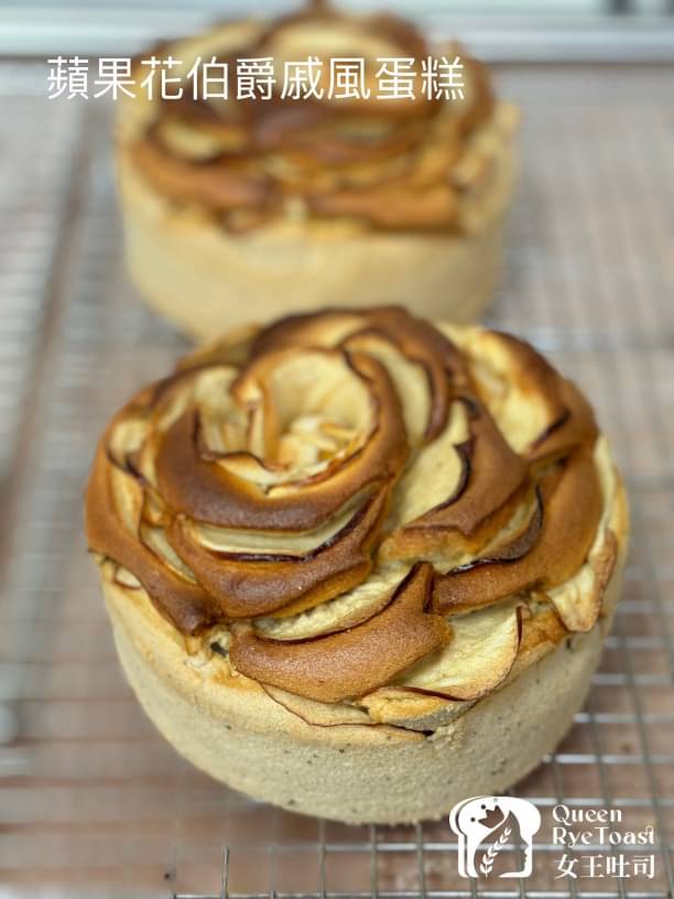 蘋果切成薄片,吸乾水分,鋪在攪拌好的麵糊上,,擺成玫瑰盛開的花朵,伯爵紅茶的特殊香氣,蛋糕體呈現淡淡的茶香味,優雅特殊造型很適合當下午茶的點心。